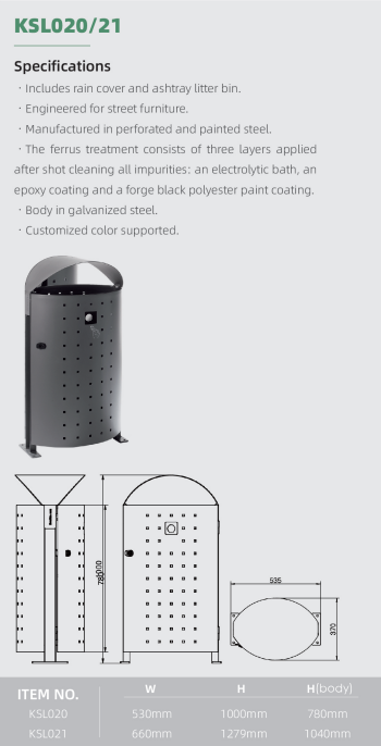 100L(KSL020)/200 L(KSL021)itter bin ncludes rain cover and ashtray,without inner bin