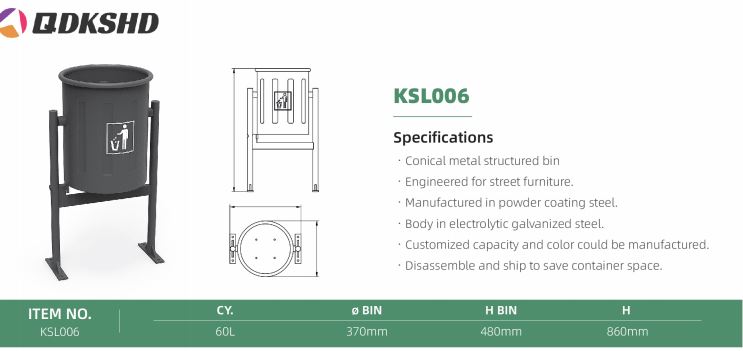Vase form litter bin 138L(KSL017)/100L(KSL018) with inner bin. custmize made size supply Without lock