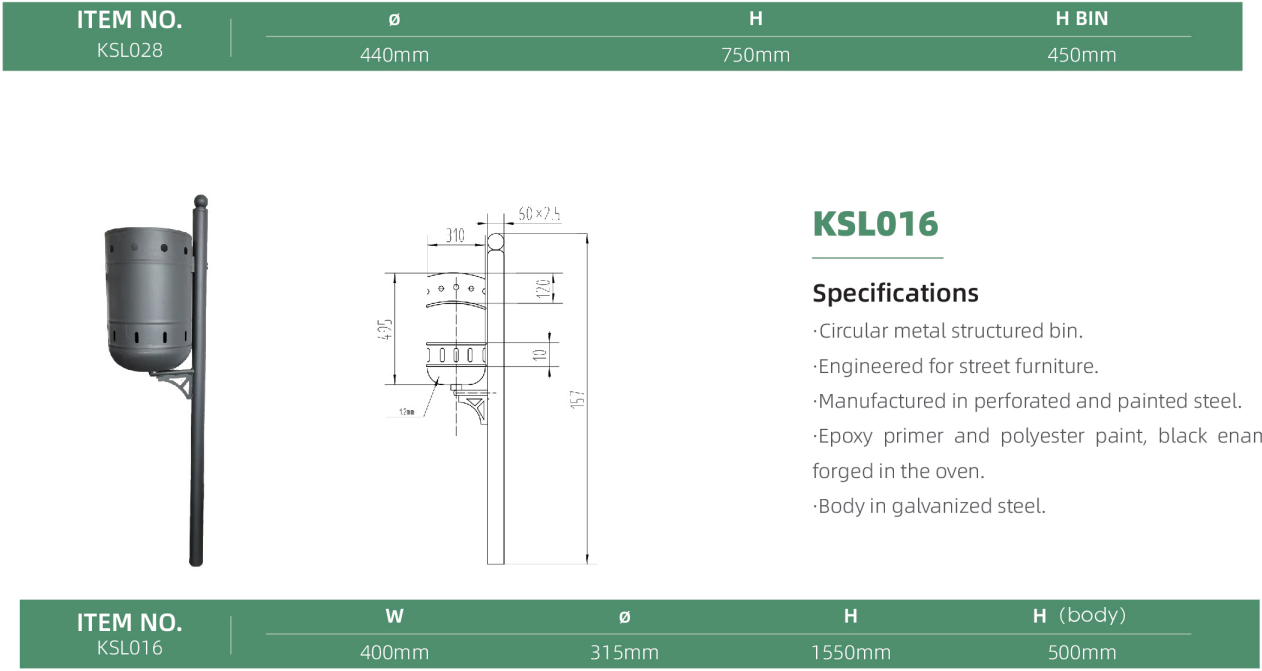 Vase form litter bin 138L(KSL017)/100L(KSL018) with inner bin. custmize made size supply Without lock