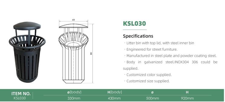 Litter bin with top lid, with steel inner binKSL030