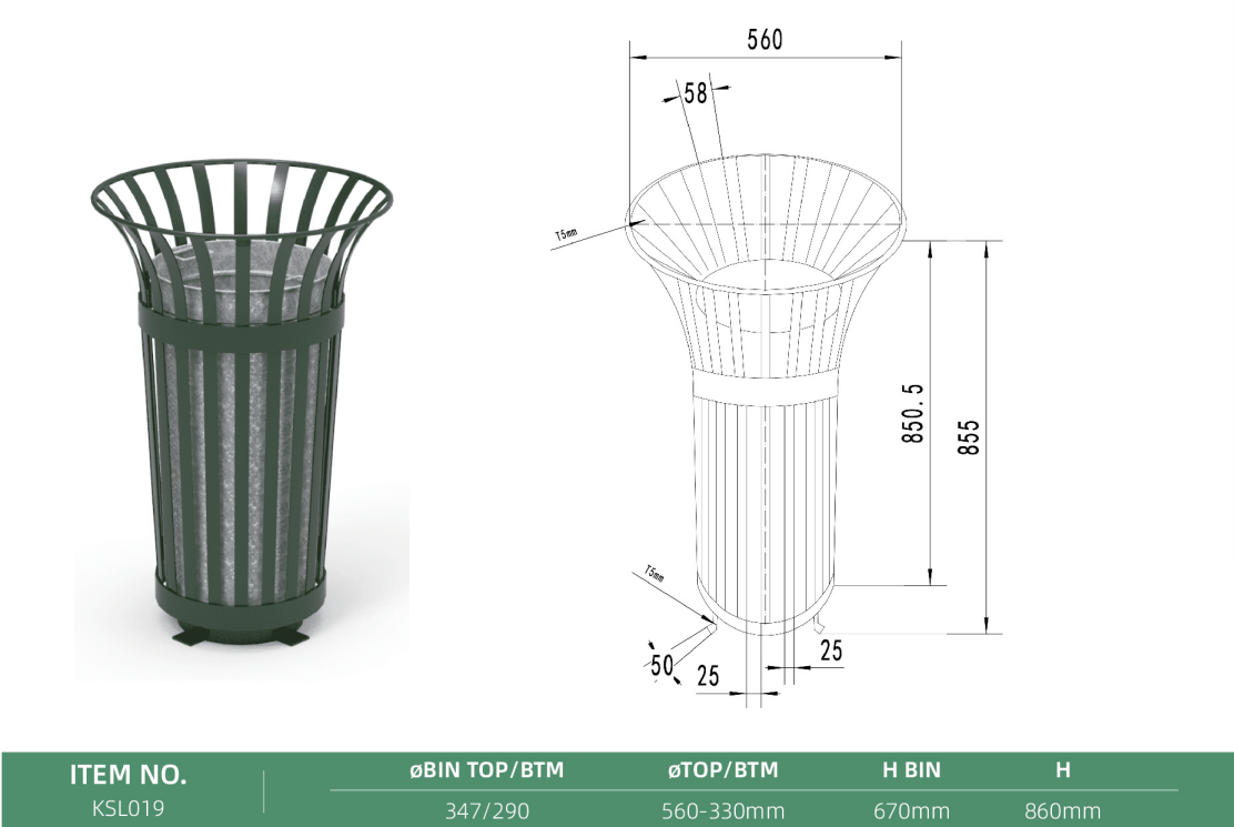 Vase form litter bin 138L(KSL017)/100L(KSL018) with inner bin. custmize made size supply Without lock